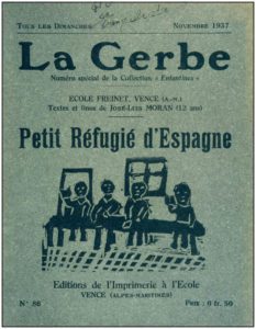 El año escolar 1938-39 llegan nuevos niños españoles, especialmente de Barcelona. Célestin y Élise quieren dar la bienvenida a los niños de la Escuela Freinet de Barcelona que huyen del avance de Franco y lanzan una suscripción nacional importante para este fin (Feb. 1939). Pero la autoridad militar francesa filtra las entradas en la frontera y dirige el flujo de refugiados a los campos de «concentración». A pesar de la oferta de atención a estos niños en Vence, las autoridades no permiten que lleguen refugiados a los Alpes Marítimos. Llama a todos los militantes del movimiento para que ayuden a los refugiados que llegarán a sus departamentos.