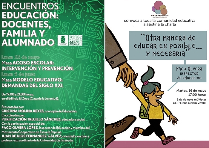 Para que las familias participen, se sientan cómodas y útiles, tiene que haber más que buenas intenciones y palabras. Es por eso que siempre he intentado animarlas e implicarlas con su participación, animando a la creación de Escuelas de familias, para que dieran conferencias en los centros, de temas en las que eran especialistas, colaborando con proyectos de actividades, participando en efemérides y también por mi parte, convocando conferencias y charlas-debate conjuntas con el profesorado y las familias.